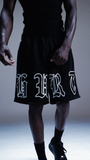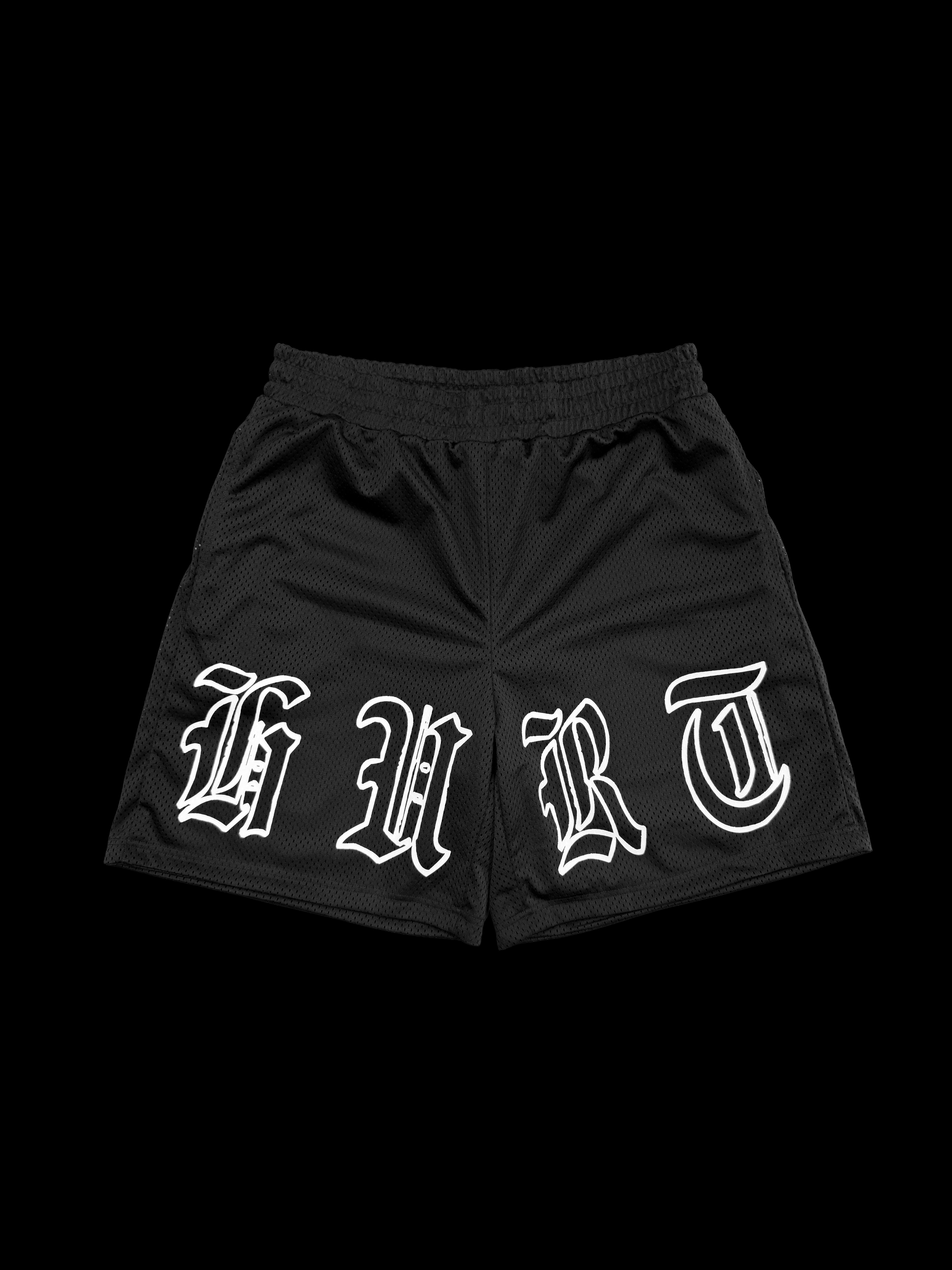 Hurt Mesh Essential Shorts - The breathable shorts that complete any outfit in and out of hurt. Featuring an old english font, double layer mesh, inseam side pockets, internal drawstrings and is a relaxed slightly baggy fit.